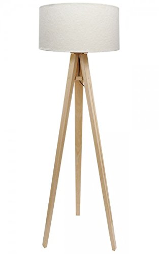 Design Stehleuchte in ansprechender Holz & Textil Kombination. Der raffinierte Bicolor Lampenschirm ist mit Velours Stoff bespannt, dies macht die Leuchte auch in ausgeschaltenem Zustand zu einem wahren Blickfang. Das wertig verarbeitete Dreibeinstativ aus hellem Kiefernholz runden das stimmige Designkonzept ab.
