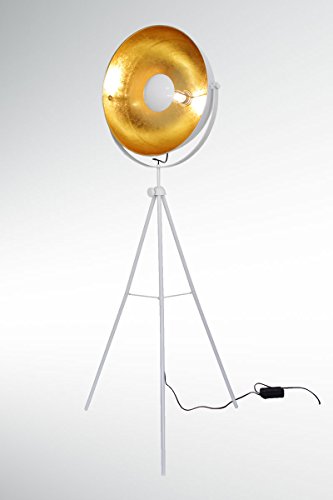 Stehleuchte Standleuchte Studioleuchte Big Alona weiß & gold Retro Dreibein[Energieklasse A++]