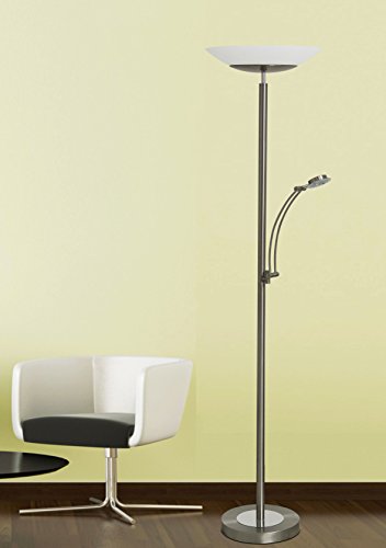 – Ein Energiesparendes LED-Modul bei dem Fluter mit gesamt 20 Watt Energieverbrauch und ca. 2000 Lumen Lichtleistung und beim Lesearm liegt ein Energieverbrauch von 4,0 Watt vor sowie ca.350lm Lichtleichtung. – Diese Leuchte ist vielseitig verwendbar, z.B. im Wohnzimmer, Schlafzimmer, Flur, etc. – Der Fluter lässt sich stufenlos dimmen. Der Lesearm enthält einen Tastschalter EIN/AUS und ist zudem schwenkbar.
