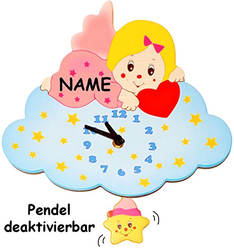 wunderschöne stabile und sehr hochwertige Wanduhr aus massiven Holz ____ Motiv: “ kleiner Engel mit Wolke in rosa / pink “ ___ sehr hochwertiges lackiertes Holz und Verarbeitung